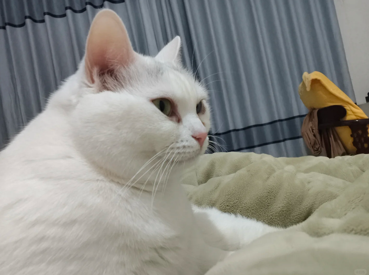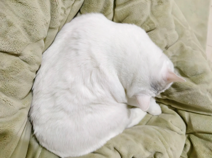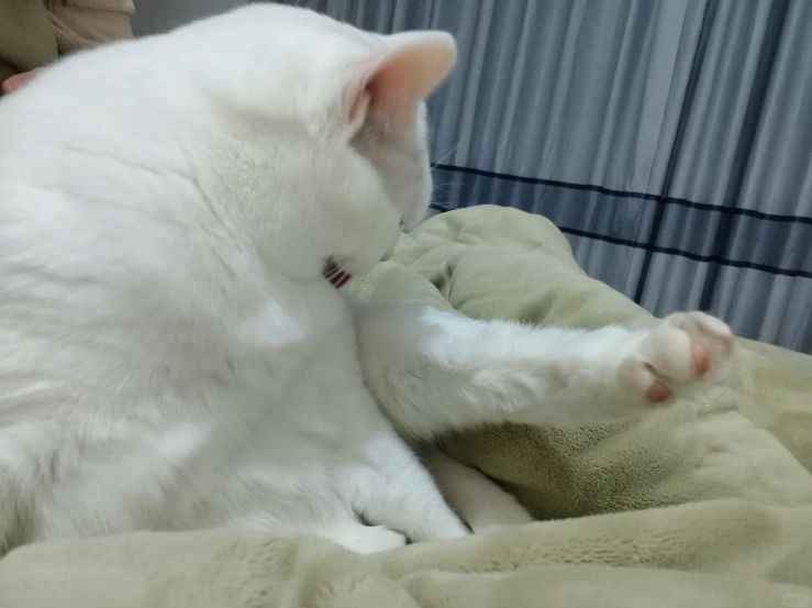 小白今天也是额外配合,舔得放光的猫毛被戳了这么多洞也不闹腾,就乖乖的躺在身边。