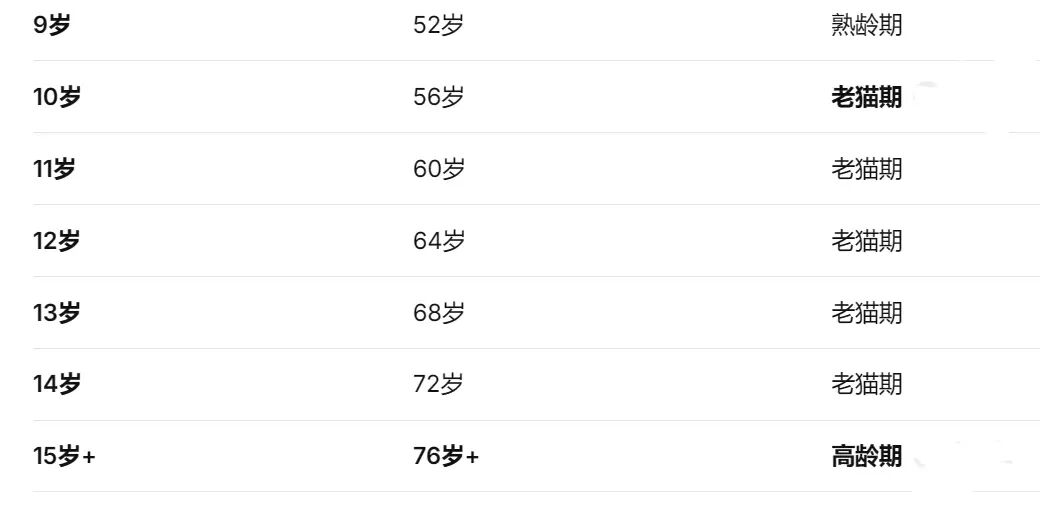 下面是猫咪更加准确的年龄对照表