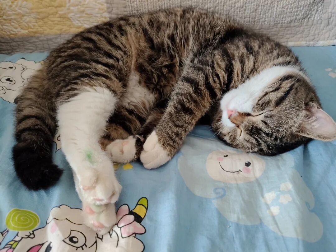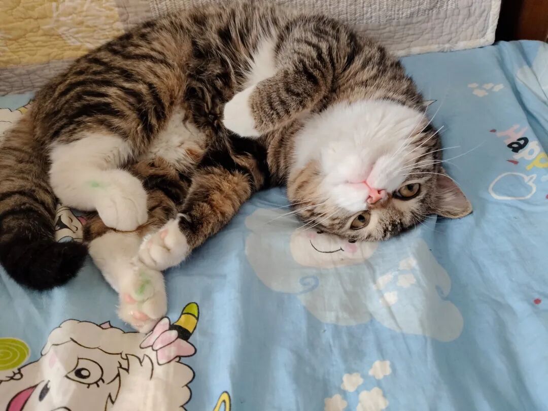 第一次踩奶,我还以为是单纯的踩奶,还心想都这么大了,才寻思起来,看着它的爪子一踩一松,甚是可爱。