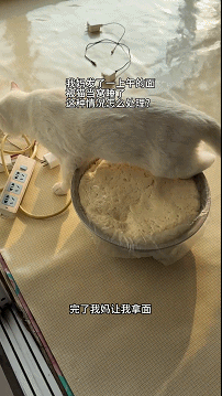 【小猫是人类的好帮手!】春节的时候,网友的妈妈要发面做饭。