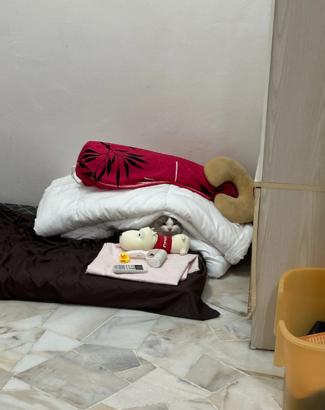 当时找猫都找疯了,一度以为猫咪都丢了,最后发现猫就在这间屋子里。