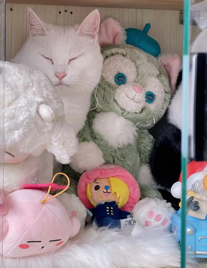 当时找猫都快找哭了,最后发现和一堆玩偶在一起。很神奇,明明那么大一只猫,竟然最后才看见。