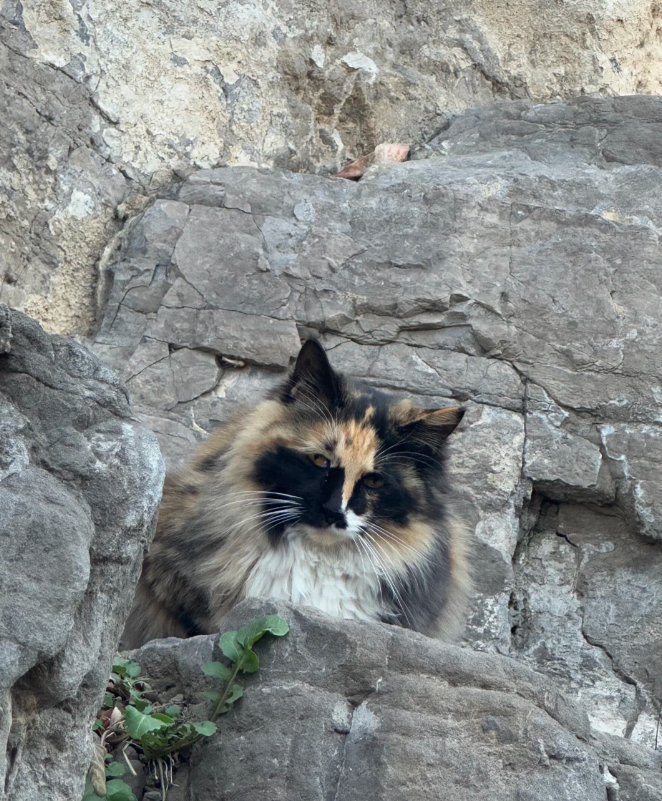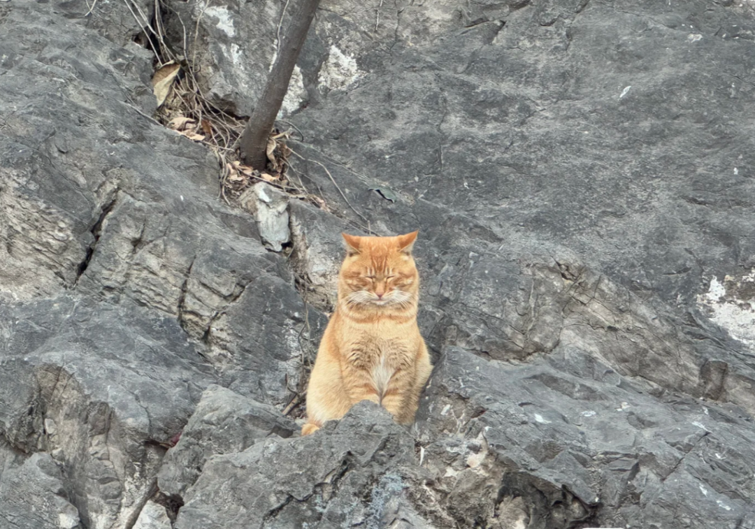 妹子旅游去看龙门石窟,发现旁边石头上有一只猫,一群人就围着猫拍照。