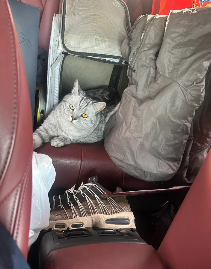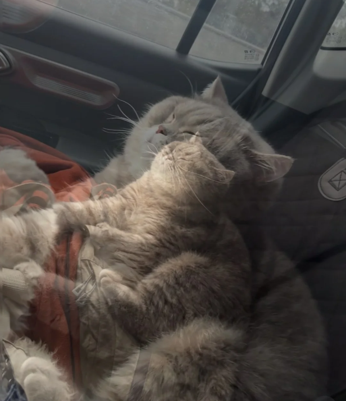 同样自驾返程的铲屎官们,看到笑出鹅叫,纷纷晒出自己的猫: