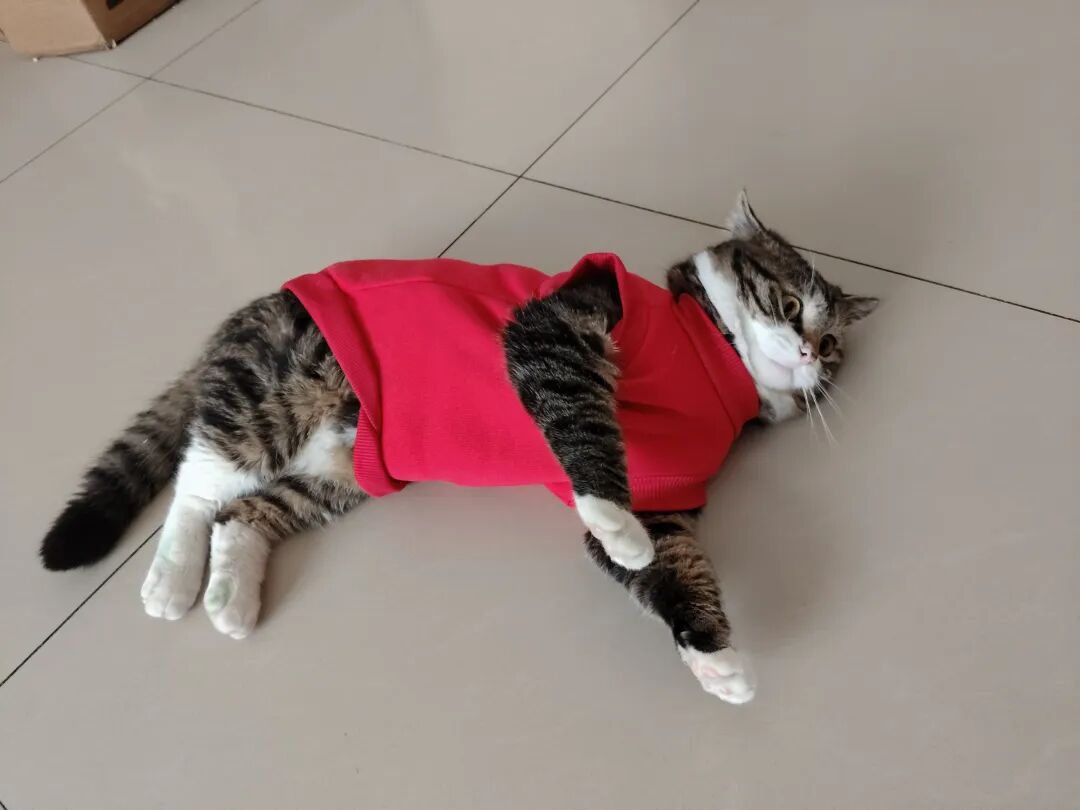 年前2月7日下单买的,寻思给猫仔整件新衣服穿穿,增加点过年的仪式感和喜庆感,也想看看猫仔穿上衣服是啥样的。