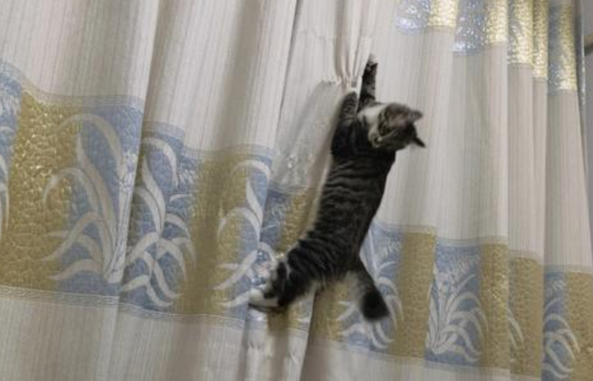 窗帘秋千/沙发流苏: 窗帘是绝佳的攀爬工具,抓几下就能变成流苏;皮沙发或布艺沙发的角落,是它们磨爪的最佳地点,一天下来可能会多出几道抓痕或脱线。