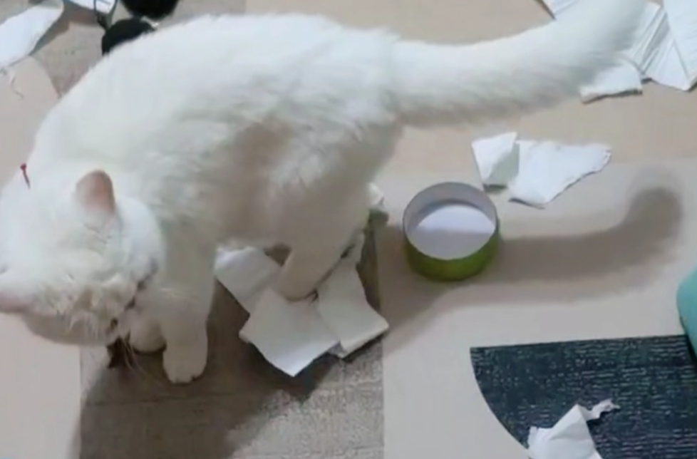 纸制品粉碎机: 对猫来说,纸是终极玩具。一整卷卫生纸或纸巾,能被它们撕扯成漫山遍野的“雪花”,铺满整个客厅。