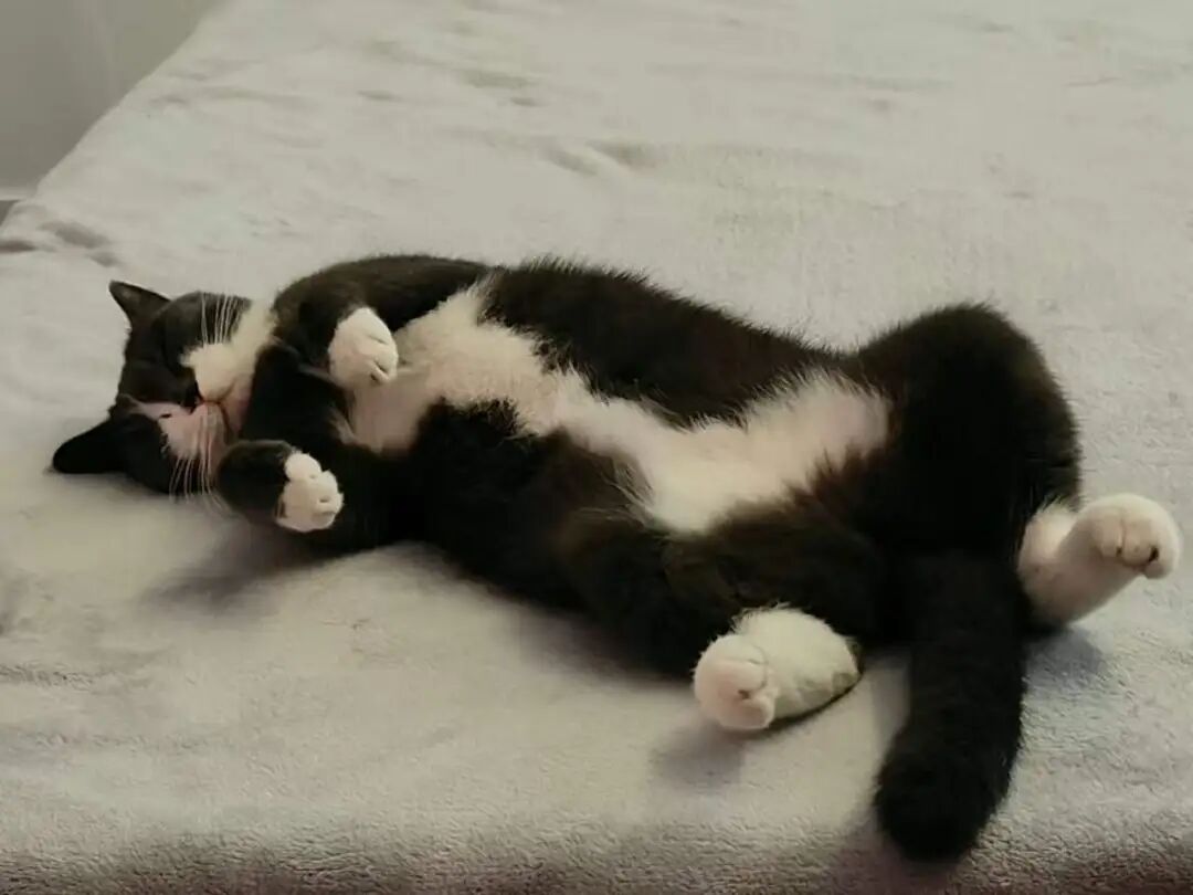 有时,两只小猫也会四仰八叉地睡在床上,这个时候是万万不舍得赶她们下床的。除了枕头区,一般我们会比较严格,直接出声制止小猫的蠢蠢欲动。