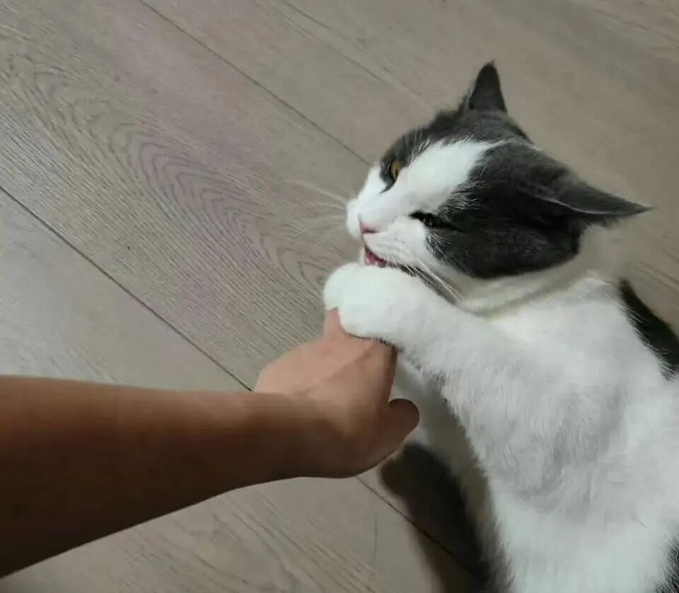 回到晚安礼的话题,有时候中分小猫,也会按捺不住亲近的心情,直勾勾地凑近拿脑袋蹭我。直到抓住我的手,轻轻啃咬,有时太过兴奋,咬得比较实,还能看见牙齿印,“嘶——,咬痛麻麻了”,在我的吃痛声中,中分小猫又悄然松口了。等气氛变得逐渐焦灼,中分熟稔地在我手背舔了几下。用她那充满倒刺的舌头,胡乱来回舔,刮得人手背麻麻的。我顺势摸上她的脑瓜子,轻轻抚摸眉心,揉捏下巴,直到她舒服到眼睛眯起来,又大大地打了个哈欠。这个时候,我就会捧着她的脸蛋轻轻说,“小猪,你该睡觉了,小猫咪不能熬夜的。”一人一猫这样的对话、情景几乎每一天都在我家上演。我手拿把掐地顺着中分小猫的后脖颈一路往下轻拍,拍到尾椎处,小中分的屁股立马拱成弯弯的虾仁状,直让我发出猥琐的笑声,嘴里不停念叨:嘿嘿,翘屁嫩猫”。据说小猫的尾巴,是个敏感区。我手上的动作一点儿也不敢马虎,卖力地轻拍小猫屁股,中分小猫似乎很享受,不一会儿发出“呼噜噜”的胸腔共鸣。