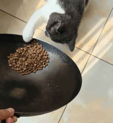其实铲屎官也在评论区解释过,真正的原因是以前有一次猫粮潮了,她就把猫粮炒了一下给喜乐吃,没想到从那以后,喜乐就彻底爱上了炒猫粮的味道。