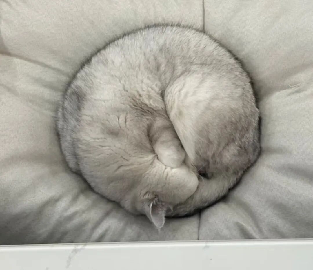 有些猫睡觉的时候,会把身体蜷成一个圆球。