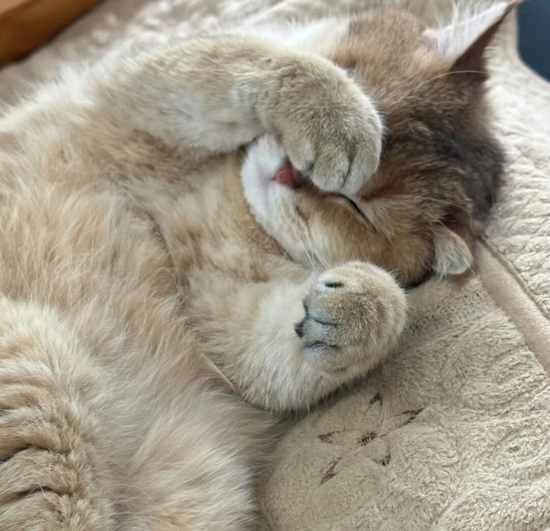猫揣手睡,很多人都见过:前爪一收,身体往下一压,整只猫像个小面包团子。
