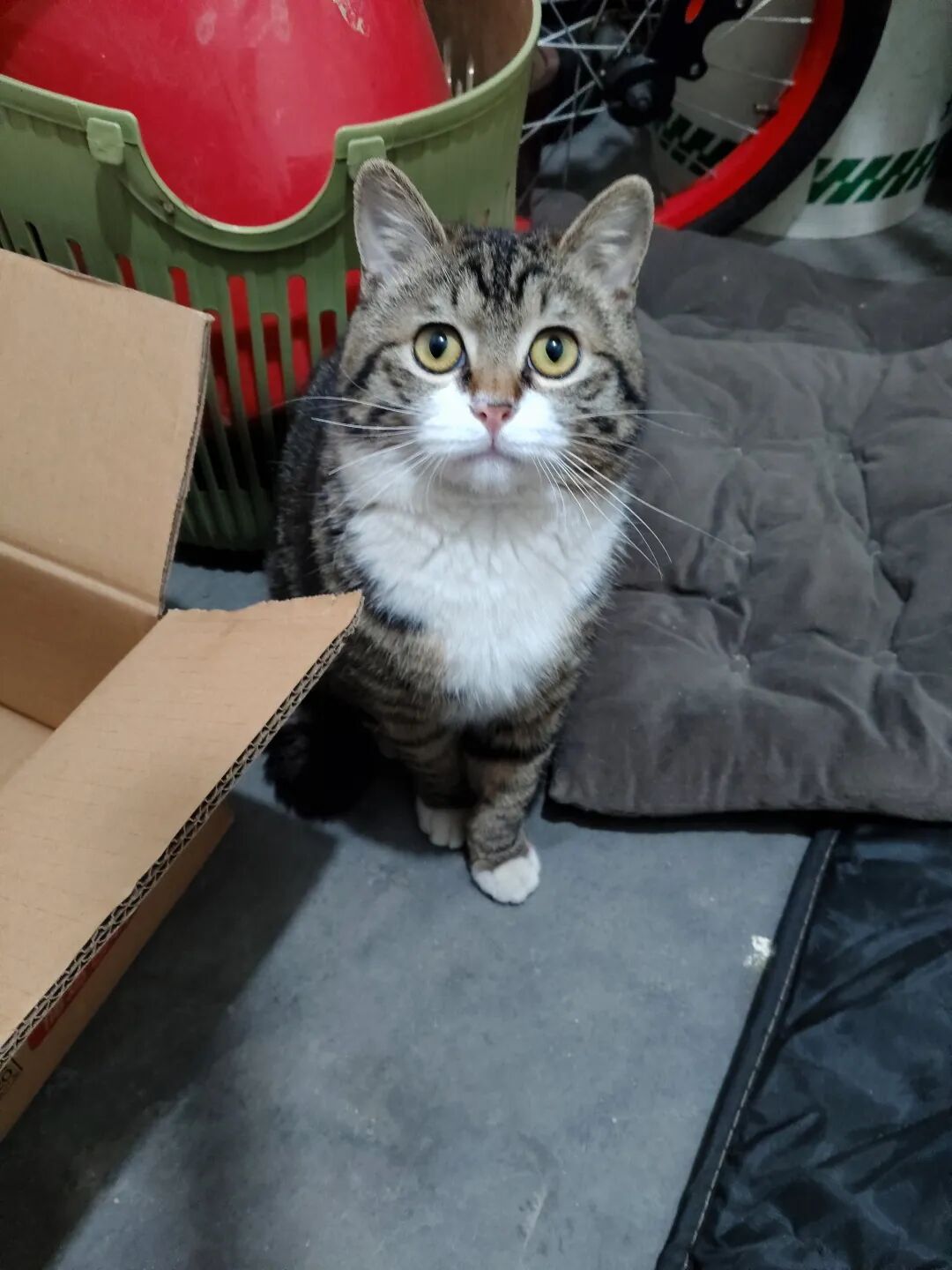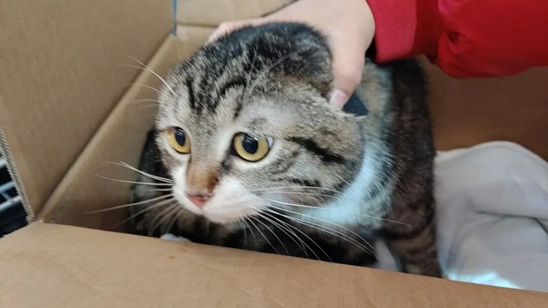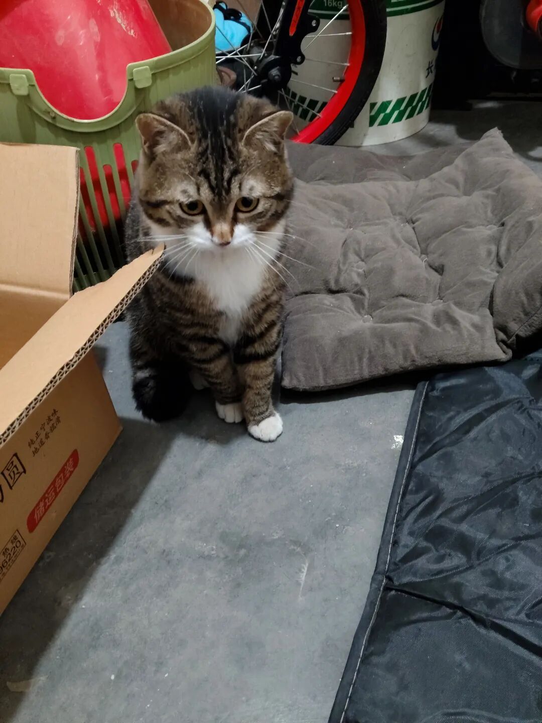 路上猫仔摇摇晃晃地,从箱子里挣脱出来,我让小宝帮忙摁着点,小宝说,摁不住呀,快坚持不住了。