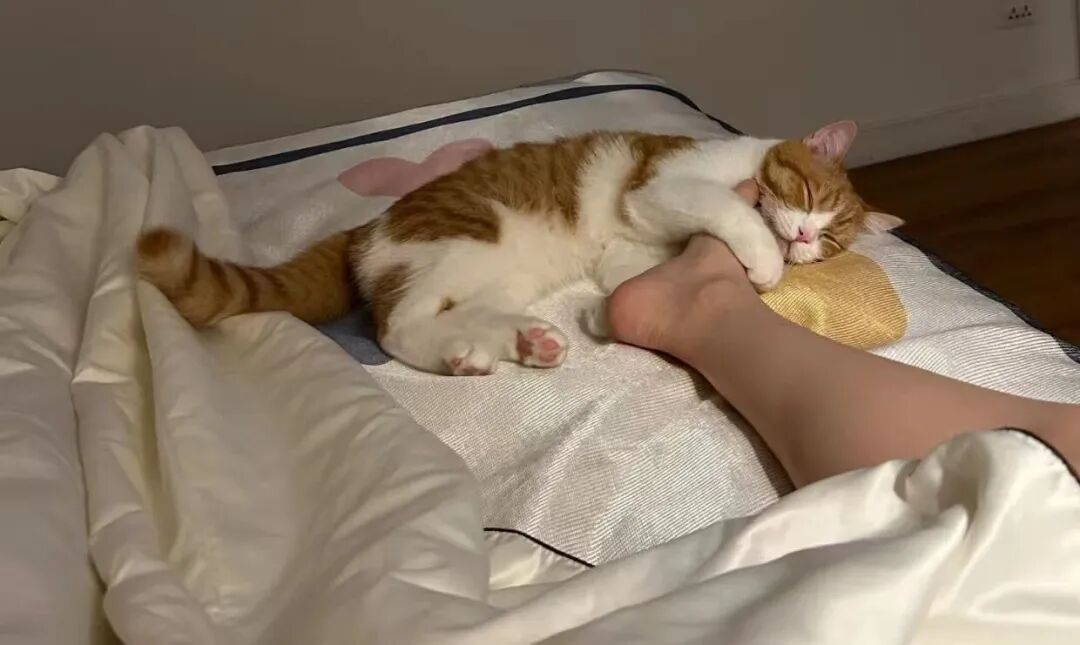 三、睡在你的脚边:你是它的“半靠山”猫如果习惯性地躺在你的脚边,既不靠太近,也不远离太远,这种情况最常见,也最耐人寻味。
