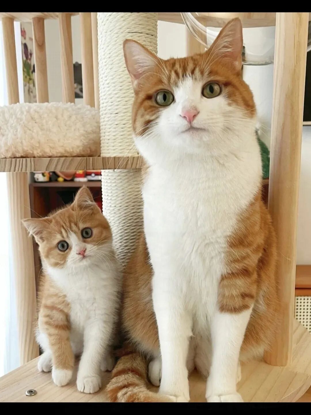 你瞧现在,一大一小两只橘,并排瘫在阳台晒太阳时,那悠闲自在的神态简直复制粘贴。不再是一个依赖、一个照顾,而是一起犯困、一起等饭、一起捣蛋的真哥们了。短短几个月,从小心翼翼捧着的“小儿子”,变成了可以勾肩搭背的“好兄弟”。这份粗线条却暖乎乎的爱,让小猫像吹气球一样,健康快乐地膨胀成了“精神小伙”。果然,最好的成长,就是陪你一起长大呀。