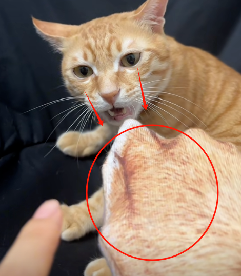 当小猫咪准备再次咬人时,妹子突然伸出巨大“猫爪”...