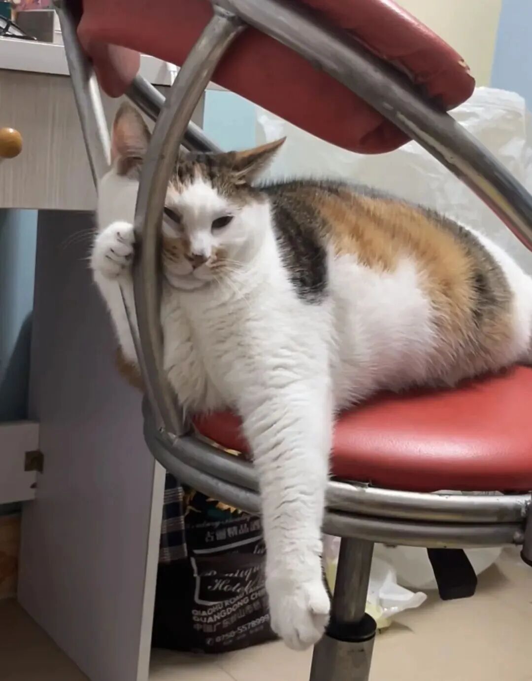 来自@酸奶是只猫 妹子,这天哈哈哈笑发财了!扭头一看椅子上,小猫是这样的姿势。。。