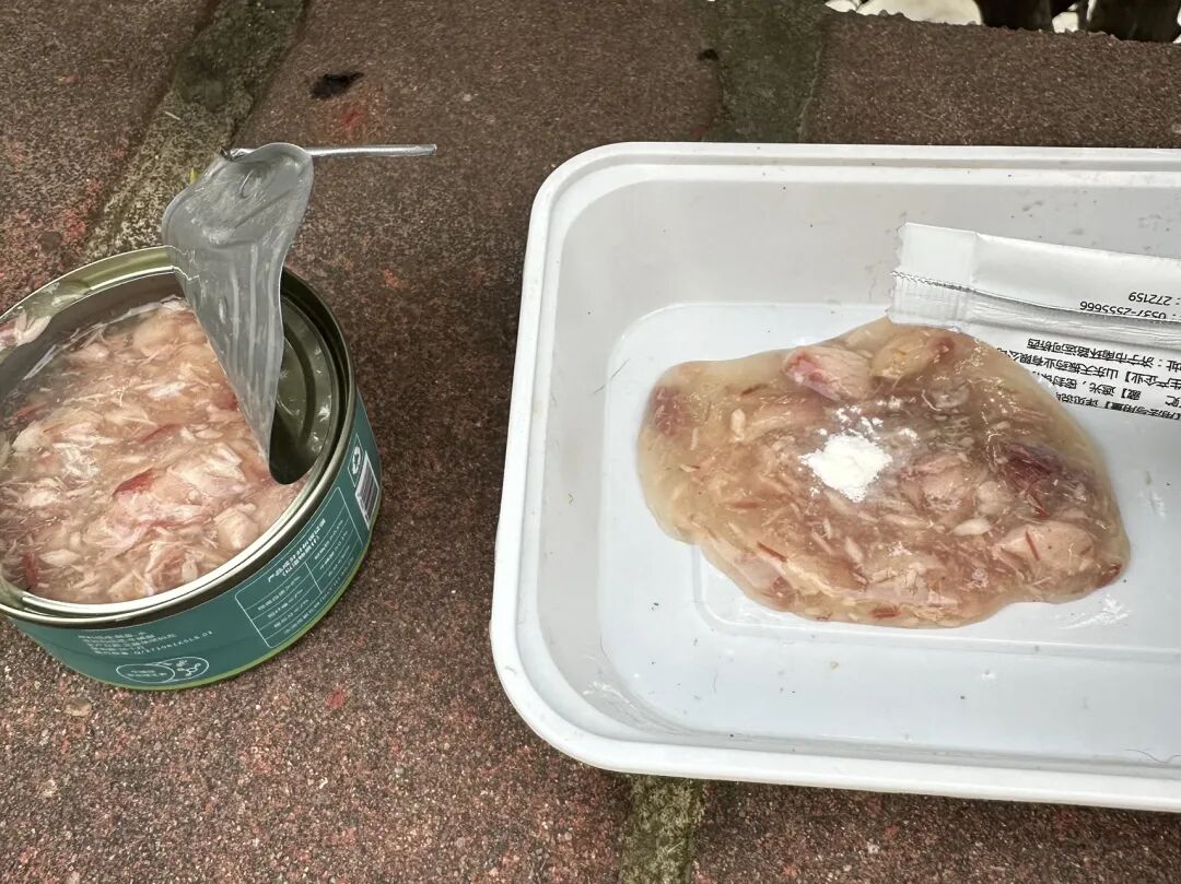 我把药粉和药水拌进罐头里,端到它面前,然后退开几步,远远地看着。