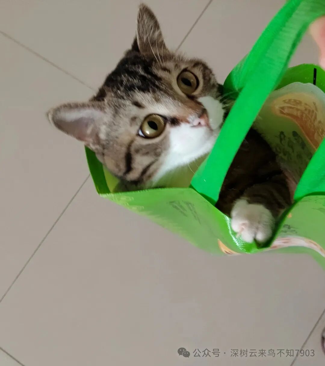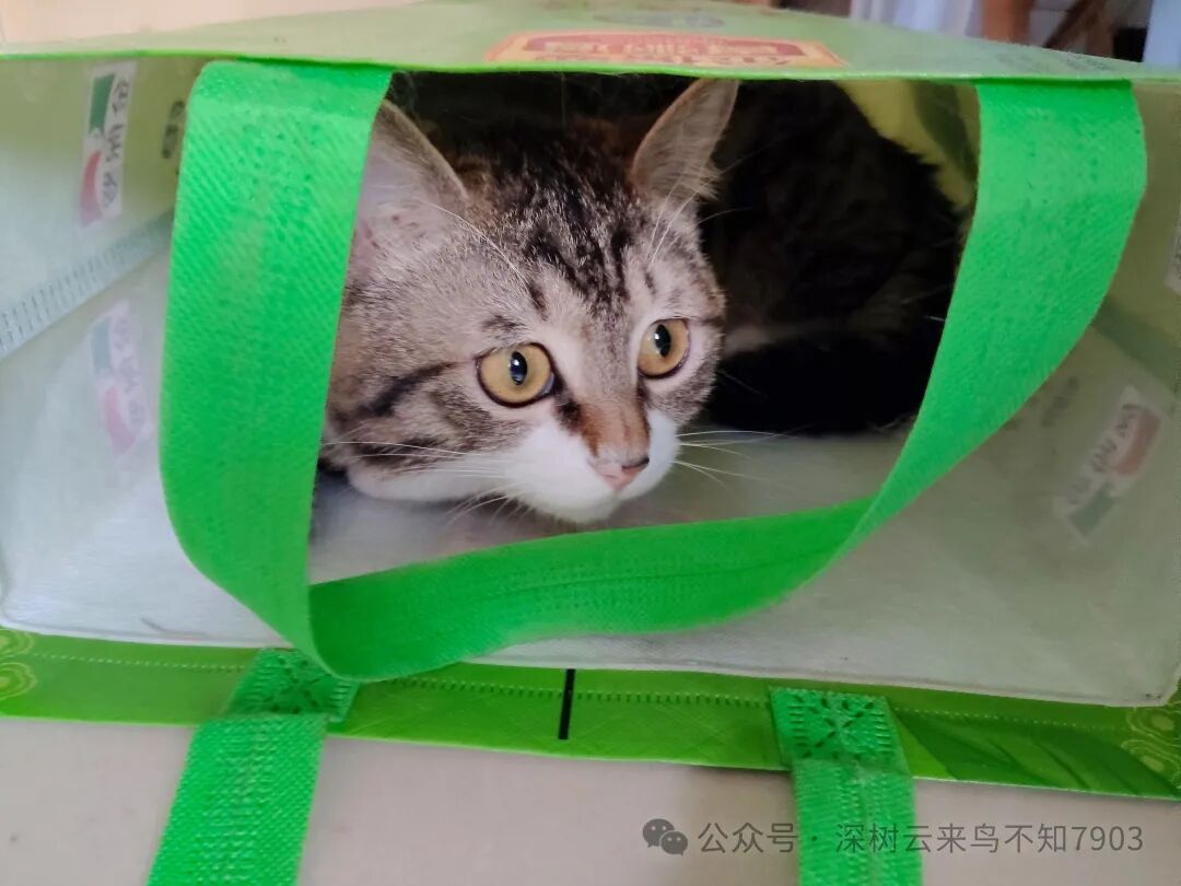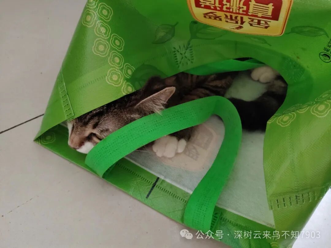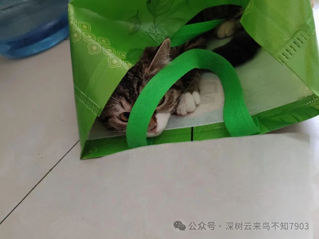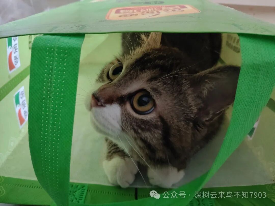看我没怎么理它,自己找了一个手提袋,拱呀拱,拱进去了,自己哄自己,玩了一大会。