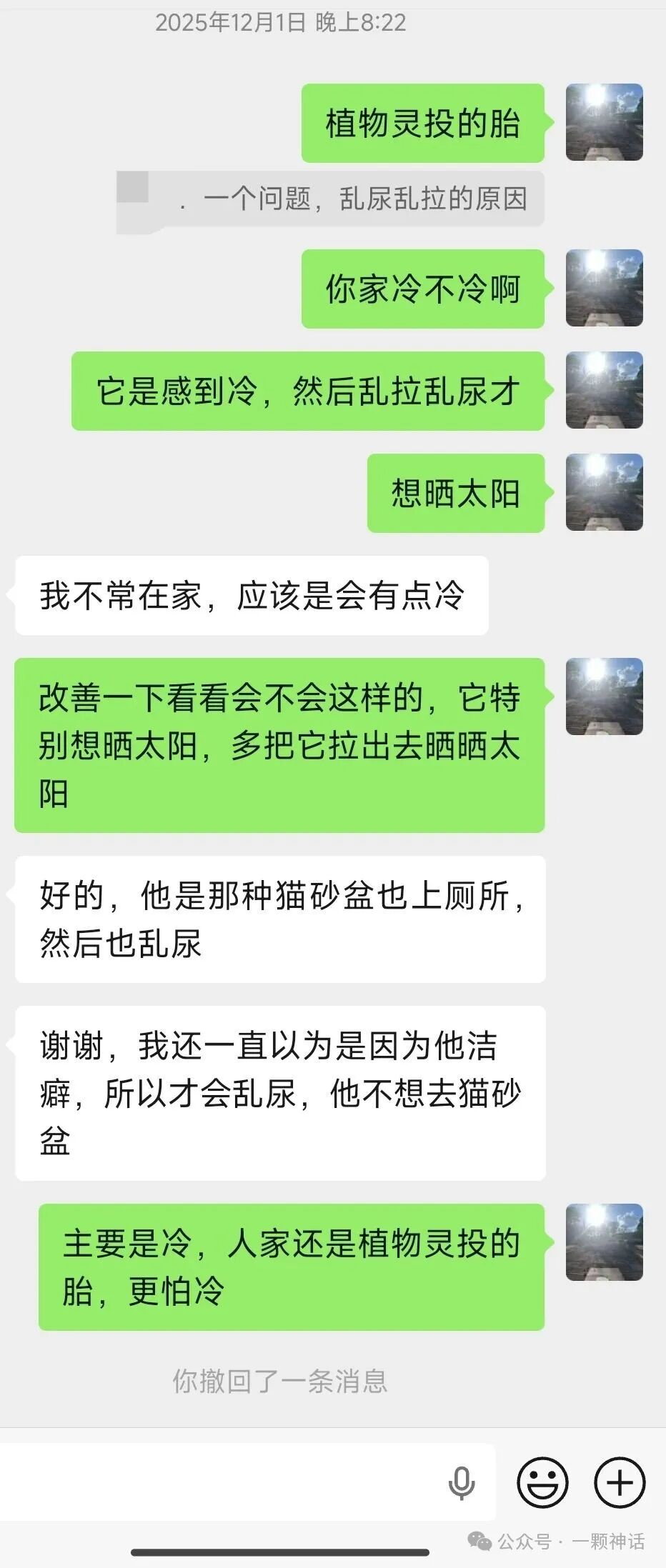 植物灵投的胎,你家冷不冷啊,它是感到冷,然后乱拉乱尿,才想晒太阳(因为是植物灵投胎嘛,植物就是晒太阳。这种类型就怕冷。)