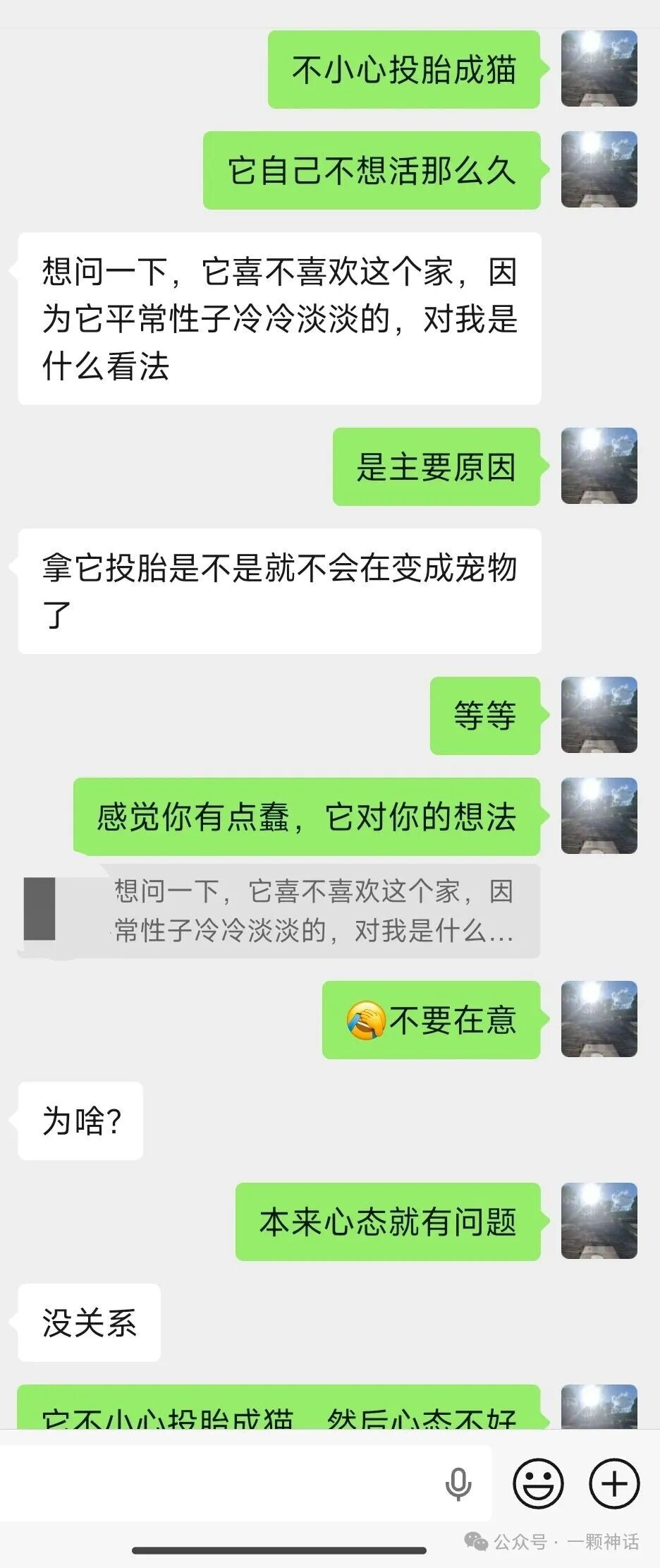 感觉你有点蠢,它对你的想法[捂脸]不要在意,本来心态就有问题,它不小心投胎成猫,然后心态不好