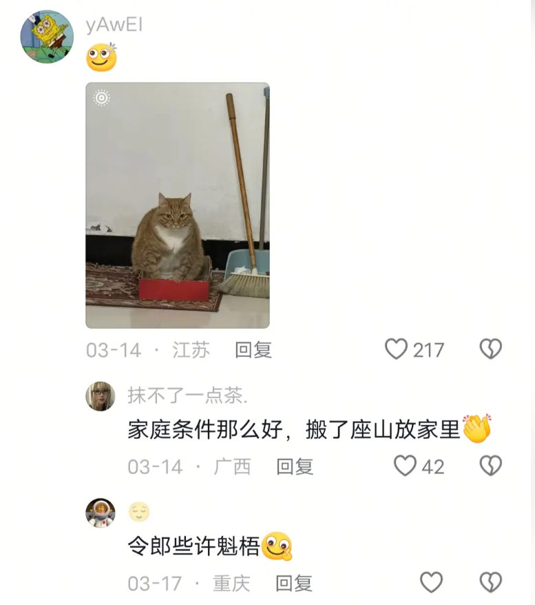 好笑吗,我只看到一个个绝望的养猫人 大橘为重 发布于 2026-4-13 10:24 囧猫大赏 📚 推荐阅读像不像小时候你被妈妈收拾的那一幕让我看看,让我看看!👀救命!睡醒床上长了颗大毛桃,凑近一看…竟然是我家猫!晨光吻过猫与草的梦猫咪配色千千万,小众款全是“盲盒”款!有钱也买不到,能养全靠缘分啊!! 上一篇 妹子把小猫送养给小哥后,多次微信问他情况都没回复,直到一年半后收到这张图...网友:确定是同一只吗?! 下一篇 养了两只粘人公猫后,我意外过上了“皇上”的日子