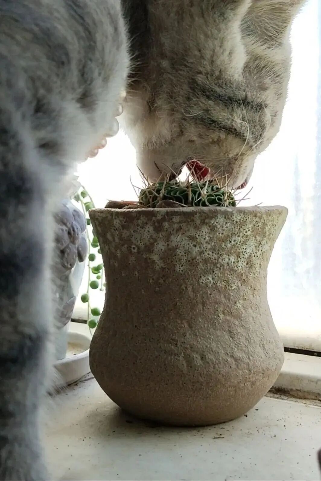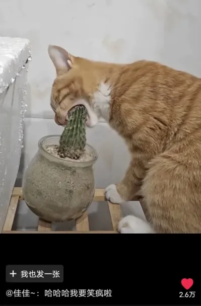 对于倔强的小猫来说,家里的仙人掌也必须要尝尝,不怕困难的勇敢猫猫来了,笑不活了哈哈哈!