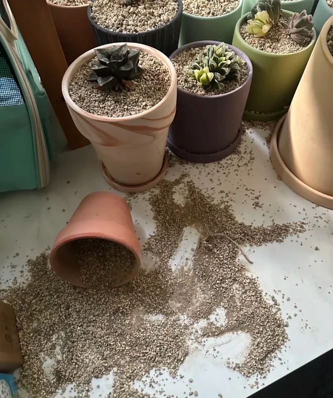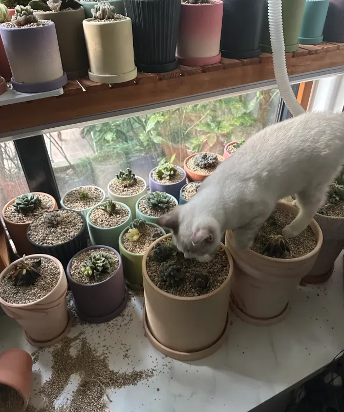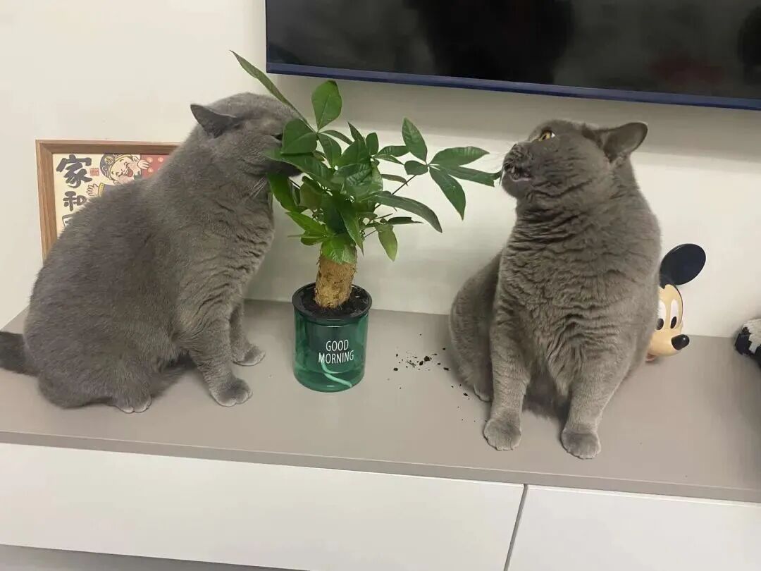 当家里同时有猫,又有绿植的时候,你将会看到以下的场景。。。