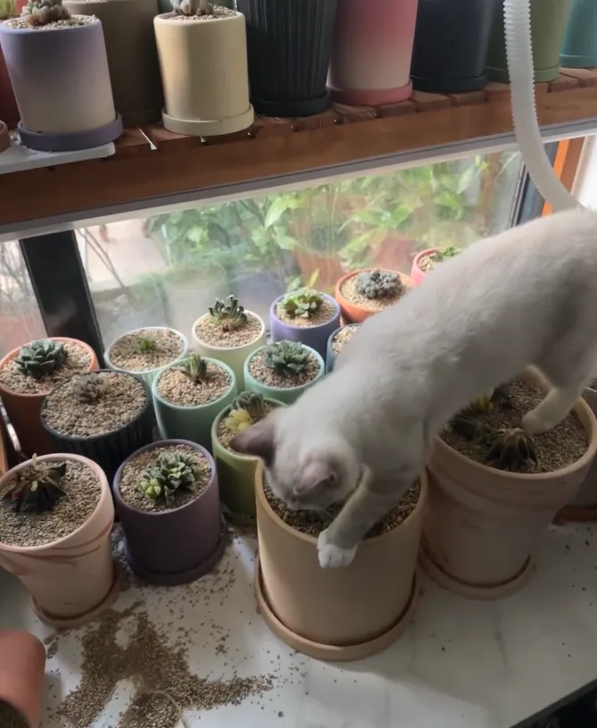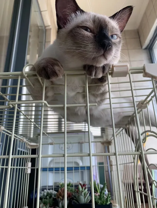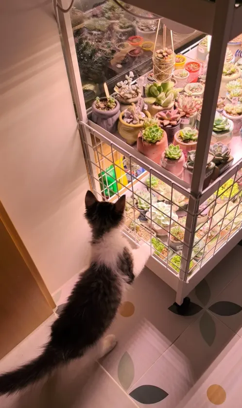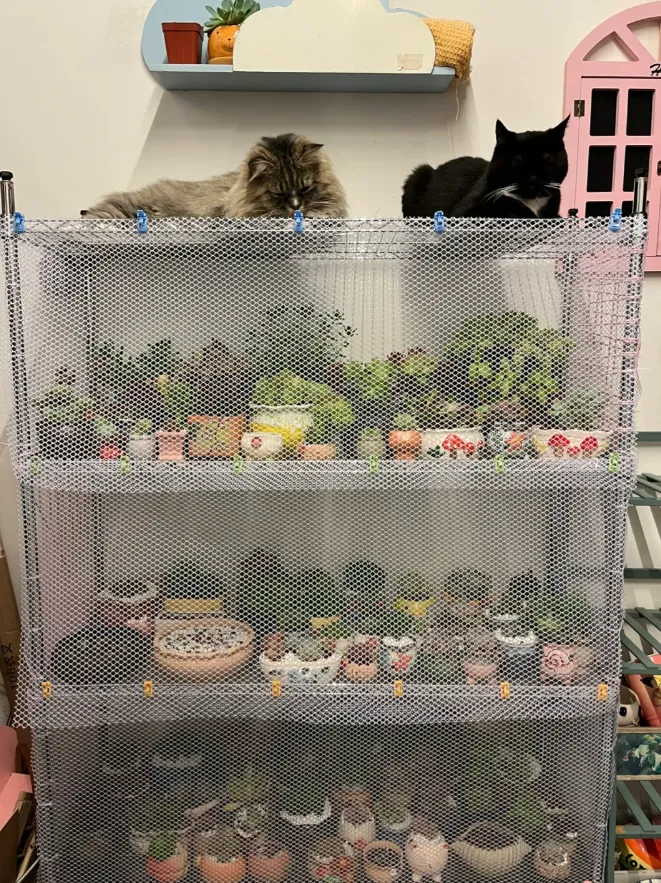 对于有经验的铲屎官们,就已经给出了猫和绿植并存的好方案。那就是:把绿植关进去~